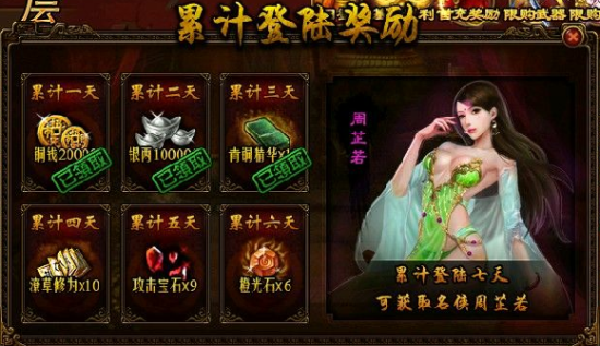 活动二:连续登陆有好礼,周芷若等你七日缠绵!