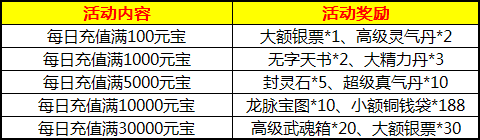 1. 活动期间,待充值元宝到账后可前往精彩活动面板内领取奖励。