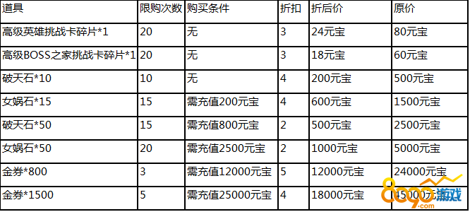 活动规则:活动期间,折扣商城开启,商城内可购买到超值价格的道具哦~