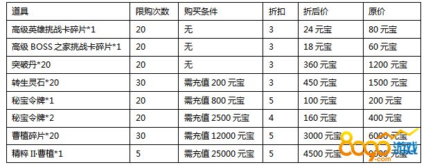 活动规则:活动期间,折扣商城开启,商城内可购买到超值价格的道具哦~