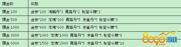 第五天充值达16800元宝:金券*1500 独角兽碎片*100 5级智力宝石*1 龙魂*3000