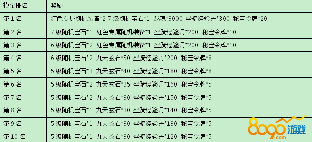 活动规则:活动期间,每日充值达12800元宝即可以下领取豪华奖励,每天奖励都有所不同。