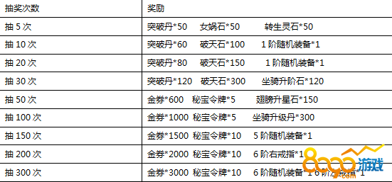 活动规则:活动期间,玩家每充值300元宝可抽奖一次,累计抽奖达到一定次数,可领取相应奖励。