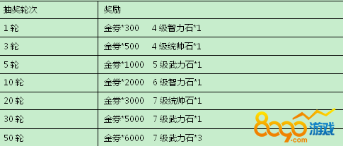活动规则:活动期间,玩家每充值200元宝可获得抽奖券*1,抽奖券可在此活动中进行抽奖,且抽奖轮次越多,可领取奖励越多。