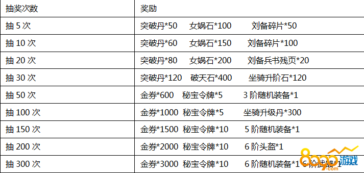活动规则:活动期间,玩家每充值300元宝可抽奖一次,累计抽奖达到一定次数,可领取相应奖励。