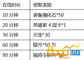 活动规则:活动期间,每日达到游戏在线时长,即可领取奖励。