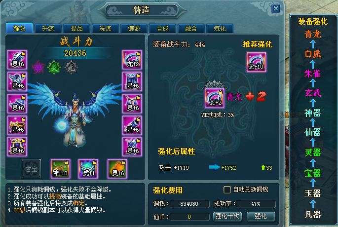 点击打开 游戏界面的功能图标 【铸造】【强化】