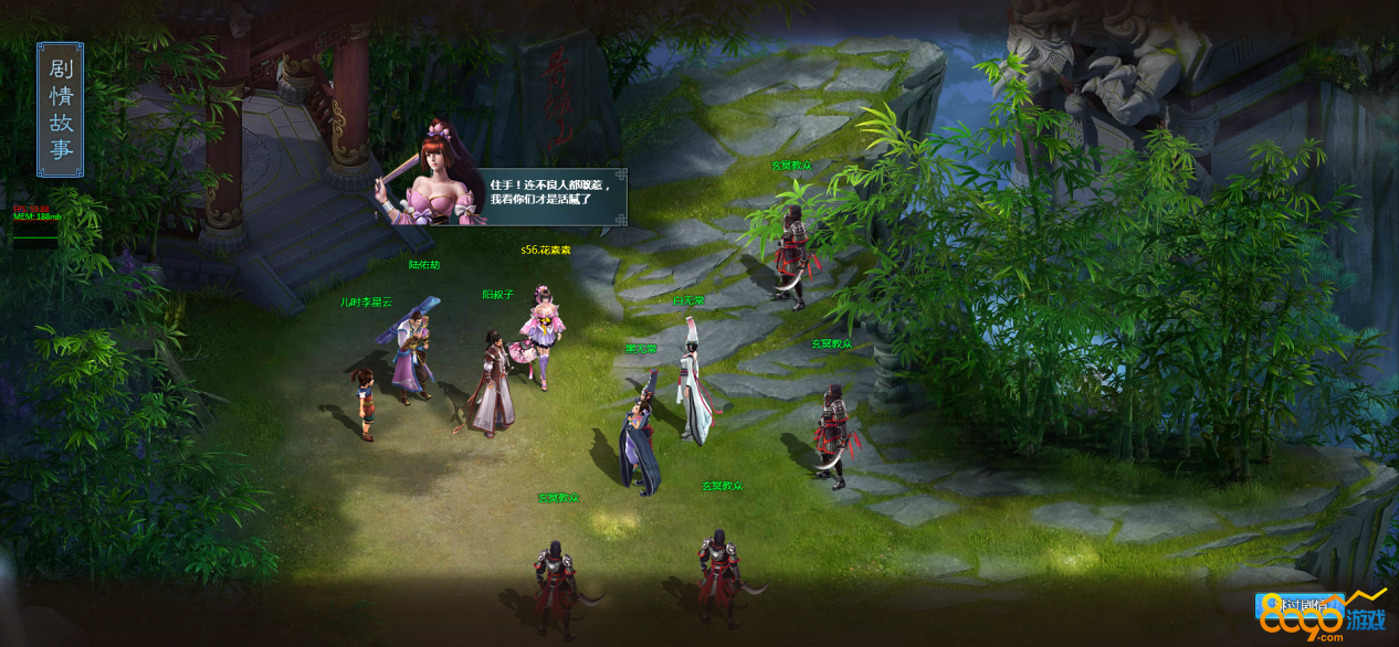 刚进游戏会先看到一场剧情故事内容,还原动画中黑白无常打伤陆佑劫意图抢夺龙泉剑的桥段,玩家角色会在剧情故事中出手相救,打败黑白无常。