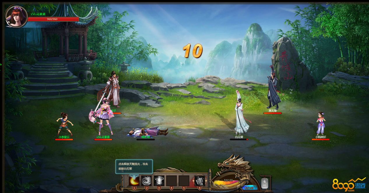游戏战斗是经典的回合制的战斗,在与黑白无常的剧情战斗中将会在每个回合都指引玩家释放技能和神器技,只需点击技能栏中的技能图标就能释放酷炫的技能。
