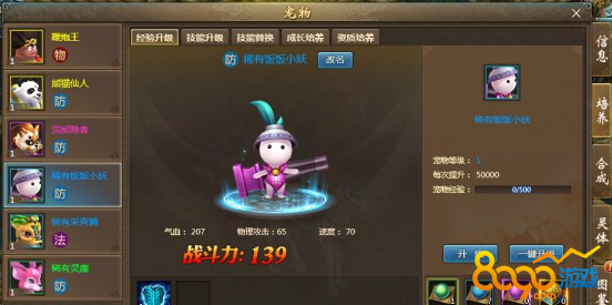 名字:每个宠物都有自己的名字,也可消耗元宝来自定义宠物名字