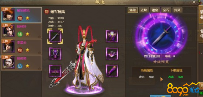 搜索"8090网页游戏"点击锻造图标打开锻造系统锻造系统分为装备锻造系统和首饰锻造系统。紫色及以上品阶的装备才能进行装备强化,点击自动强化将会对选中的装备进行自动强化(强化需消耗铜钱)。装备等级不得超过主角等级。强化有冷却时间(消耗元宝可取消冷却时间)。