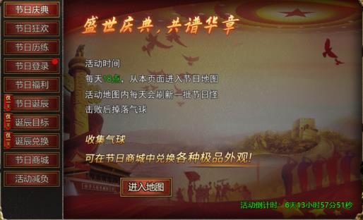 【活动内容】:每天18点可进入节日地图,打节日怪,掉气球,换极品外观!
