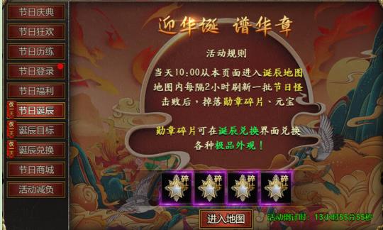 【活动内容】:10月1日当天10点开始,进入诞辰地图击败节日怪,收集勋章碎片可在诞辰兑换中兑换活动外观!