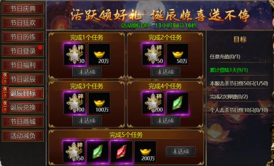 【活动内容】:10月1日当天,完成目标任务,即可领取诞辰目标奖励!