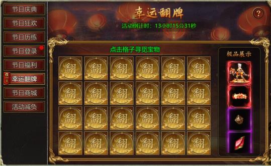 【活动内容】:活动期间,可以消耗灵符购买幸运之力进行翻牌,全部翻牌完,奖励券拿走!