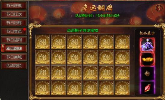 【活动内容】:活动期间,可消耗幸运之力进行翻牌,全部翻完奖励全部获得!