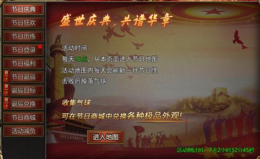 【活动内容】:每天18点可进入节日地图,打节日怪,掉灯笼,换极品外观!