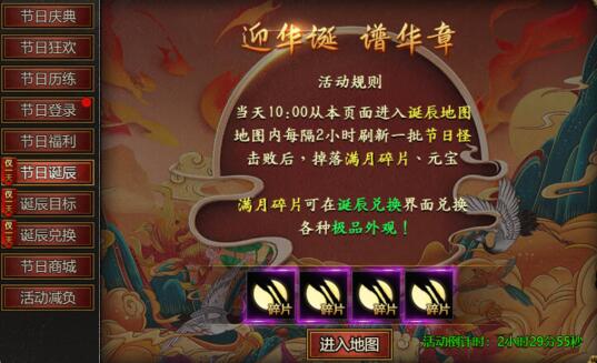 【活动内容】:当天10点开始,进入诞辰地图击败节日怪,收集勋章碎片可在诞辰兑换中兑换活动外观!