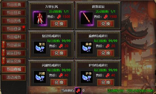 【活动内容】:当天可使用诞辰碎片兑换活动时装、称号及特戒碎片!