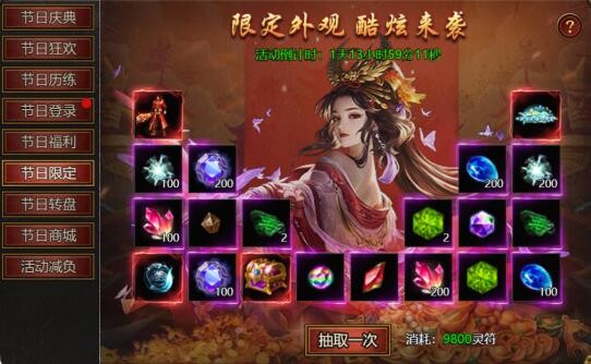 【活动内容】:使用灵符购买限定碎片并进行抽取奖励,抽满奖励全部获得。