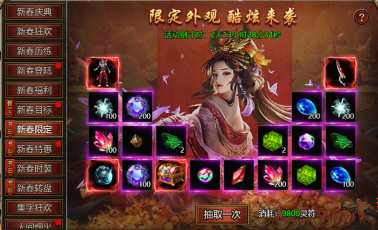 【活动内容】:使用灵符购买限定碎片并进行抽取奖励,抽满奖励全部获得。