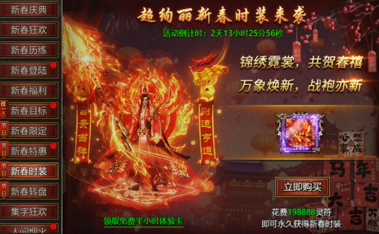 【活动内容】:活动期间,超绚丽新春时装来袭,使用灵符可购买永久新春时装!