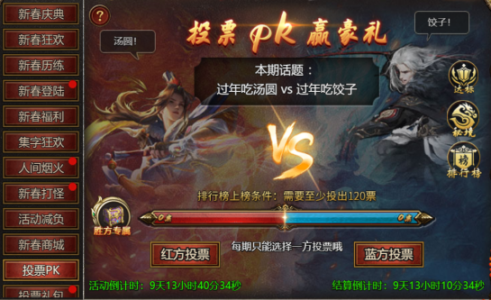 【活动内容】:活动期间,可选择阵营投票,投票上榜可获得丰厚奖励!
