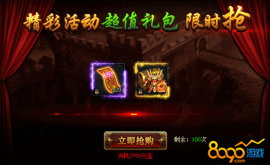 活动期间,每人每天只可购买100个超值优惠的传世惊喜大礼包!!