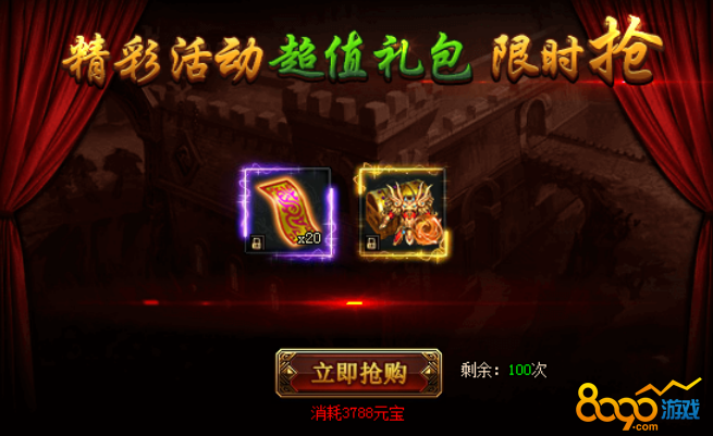 活动期间,每人每天只可购买100个超值优惠的传世惊喜大礼包!!