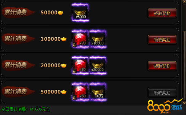 活动期间,每日累计消费指定金额元宝即可获得奖励!