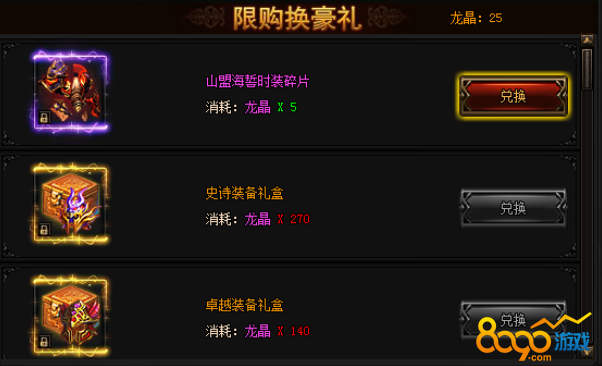 活动期间内,进行幸运探宝有一定概率获得龙晶。可以使用龙晶兑换下列极品奖励!
