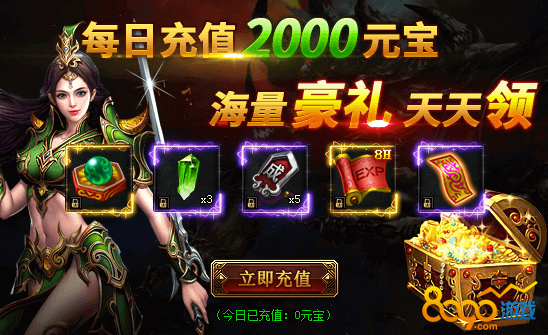 活动期间内,每天充值2000元宝可以领取1000W经验,暗器结晶,成就令牌,探宝符、8小时三倍经验符等海量道具!