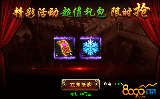 活动期间,每人每天只可购买100个超值优惠的雪花,中级战魂丹!