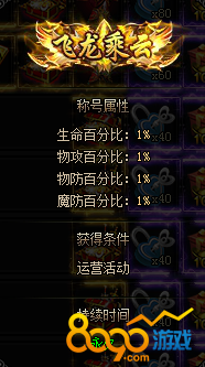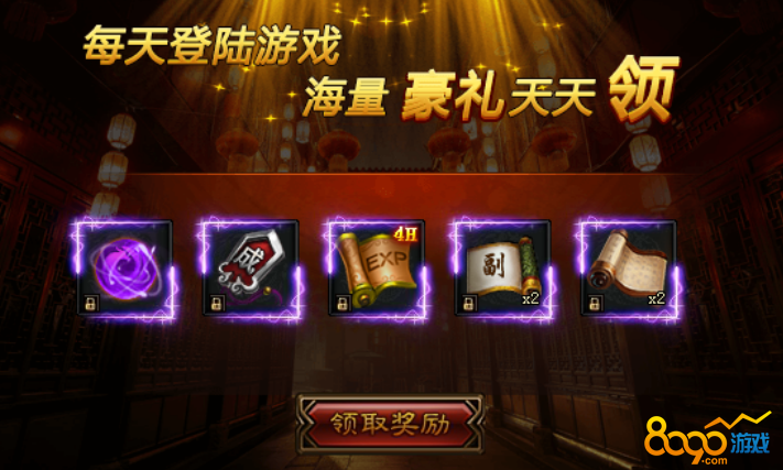活动期间内,每天充值2000元宝可以领取1000W经验,龙纹精华,成就令牌,探宝符、8小时三倍经验符等海量道具!