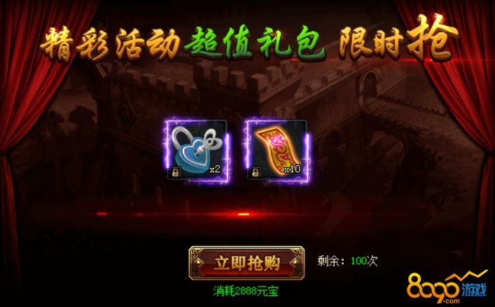 活动期间,每人每天只可购买100个超值优惠的同心锁,探宝符!(温馨提示:2月8日到2月23日0点期间,不同时间会出不同的限购道具哦)