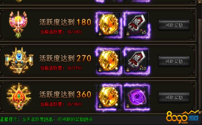 活动期间内,玩家每天活跃度达到要求即可领取奖励。