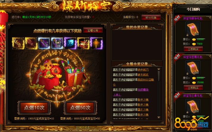 活动期间内,可以在右侧购买超值优惠的探宝符,让您一次探个爽!