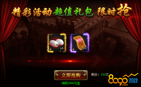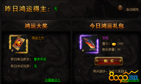 活动期间,鸿运礼包限时购买,超低折扣,还有鸿运大奖等你来拿(全服限量买到即赚到)!