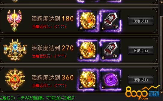 活动期间内,玩家每天活跃度达到要求即可领取奖励。