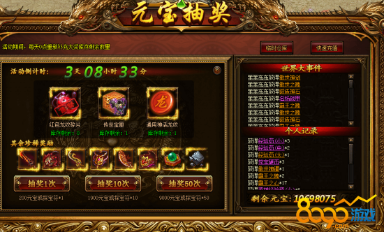 活动5、元宝抽奖(5月29日0点-6月2日0点)