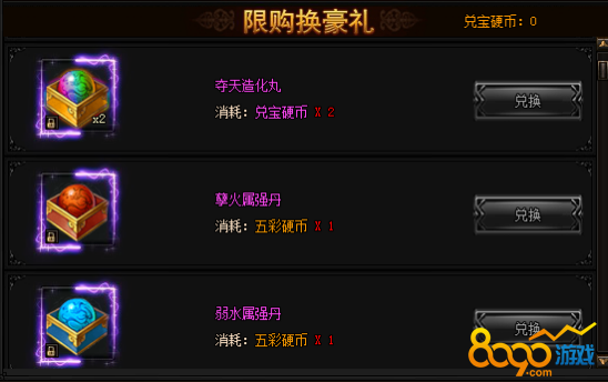 活动期间内,进行幸运探宝有一定概率获得兑换硬币。可以使用兑换硬币兑换下列极品奖励!