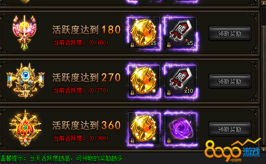 活动期间内,玩家每天活跃度达到要求即可领取奖励。