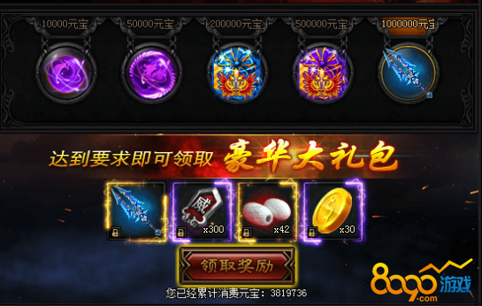 活动期间内,玩家累计消费元宝数额即可领取奖励。
