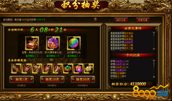 活动期间,每天0点重新补充大奖库存剩余数量!
