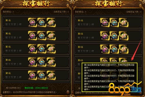 活动期间,探宝次数达标可领取排行探宝奖励。