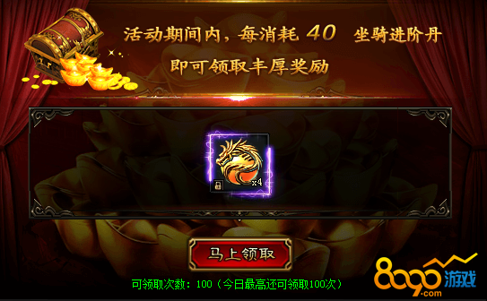 活动期间内,每消耗40个坐骑进阶丹即可领取4个返还坐骑丹。