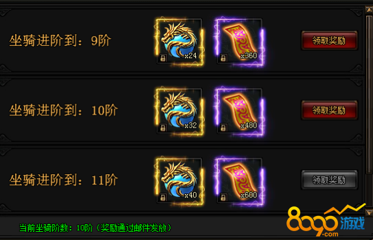 活动期间,坐骑达到指定要求即可领取大奖!每项奖励每人仅限领取一次!