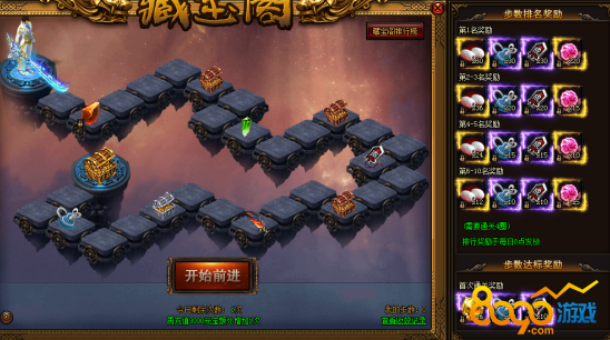 活动期间内,点击开始前进,角色会前进骰子显示的相应步数;角色会拾取所有经过的奖励,奖励包括百战装备兑换令牌;每天有1次免费次数,每充值3000元宝可获取1次;完成1圈游戏后,可以重置游戏,同时获取1次额外次数;完成规定的圈数可以获得达标奖励;完成4圈即可上榜,每日0点会结算排行奖励;每日0点会重置游戏并清空步数,记得一定要用完哦!