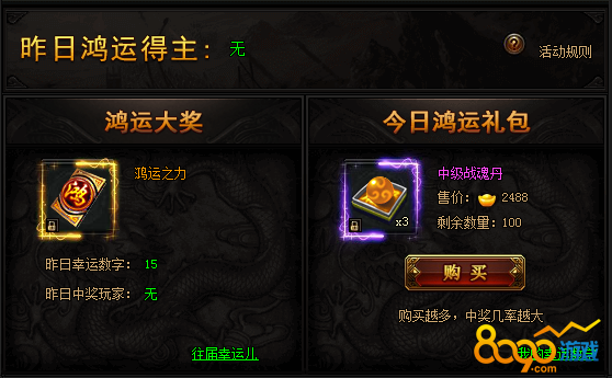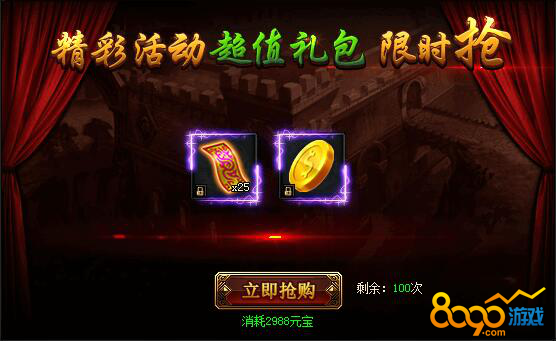 活动期间内,购买限购礼包,即有机会抽取每日鸿运大奖。