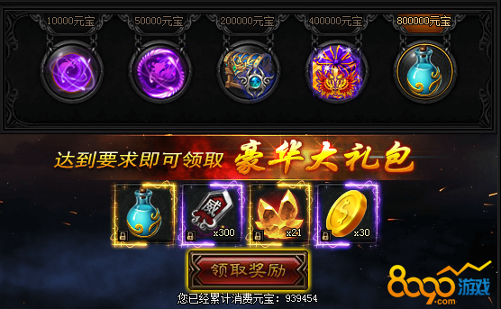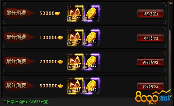 活动期间内,玩家累计消费元宝数额即可领取奖励。